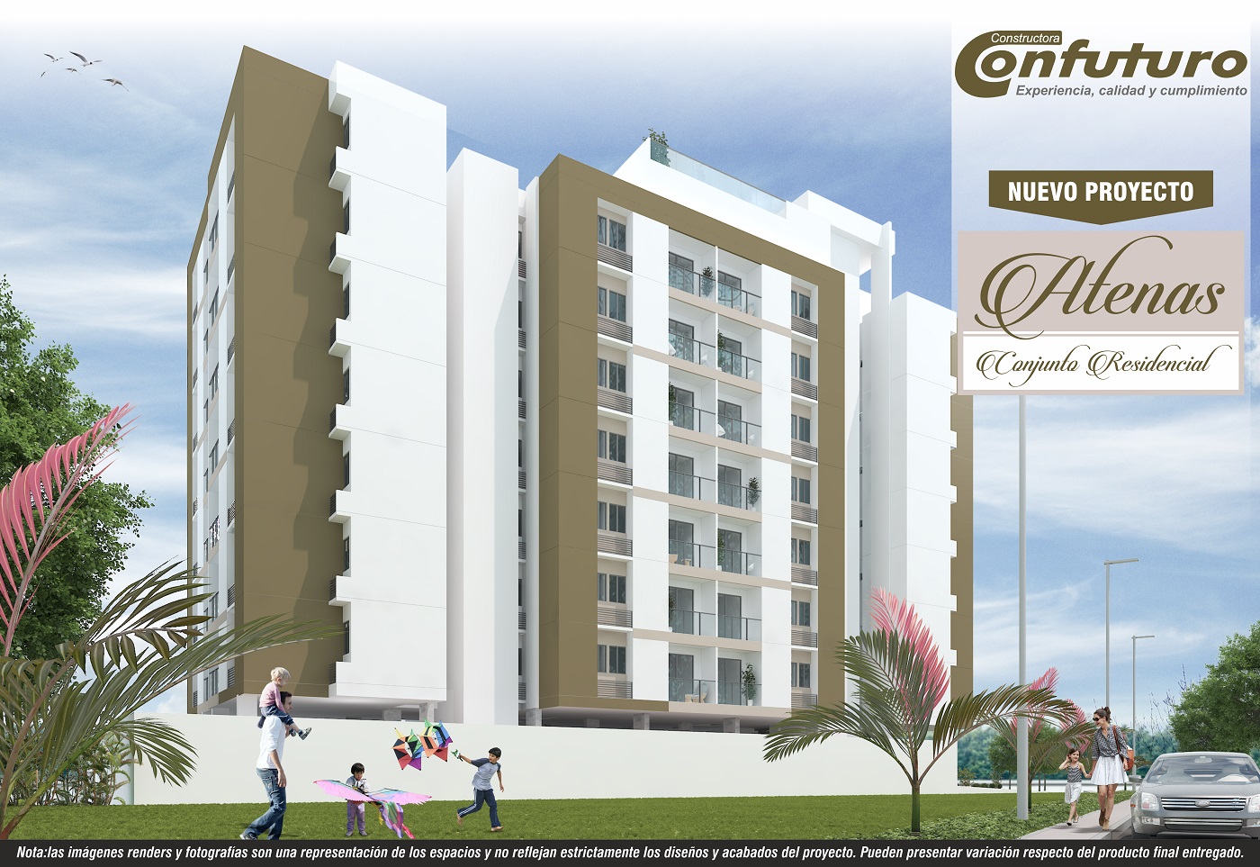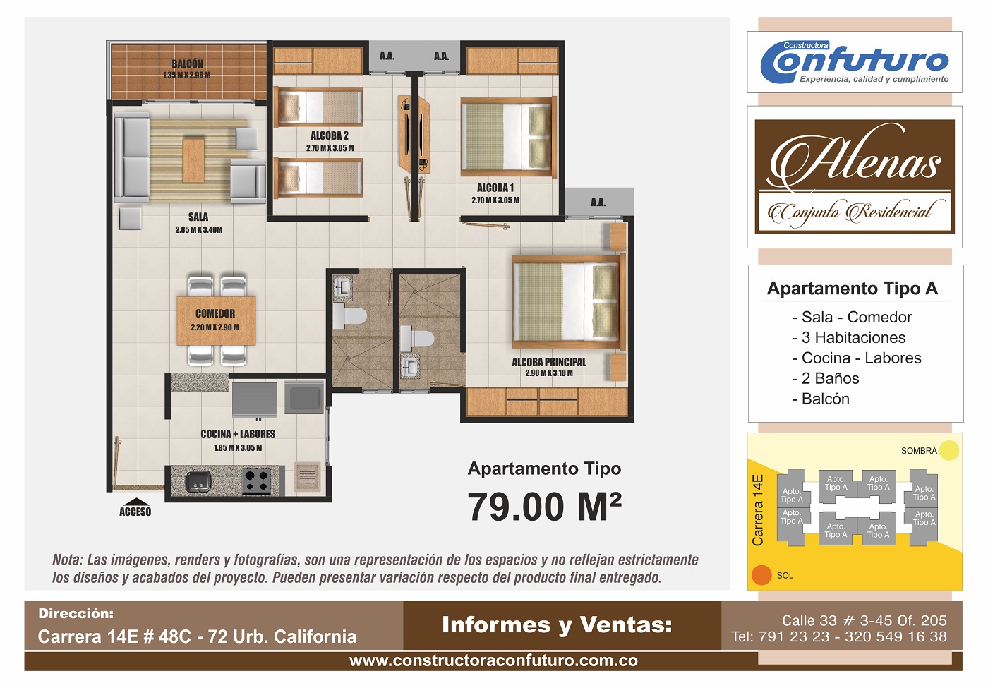 Apartamentos de 3 Habitaciones, 2 Baños, Sala - Comedor, Cocina - Labores y Balcón, para un área de 77m2 y 79m2
