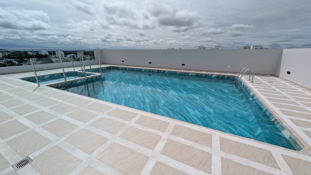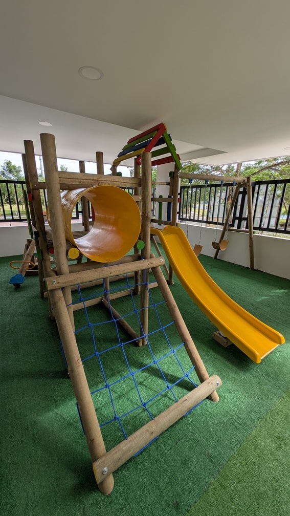 Salón social con aire acondicionado Piscina para adultos y niños, Duchas, Baños, Portería, Oficina de administración, Zona de juegos infantiles, Gimnasio con dotación básica y Terraza BBQ.