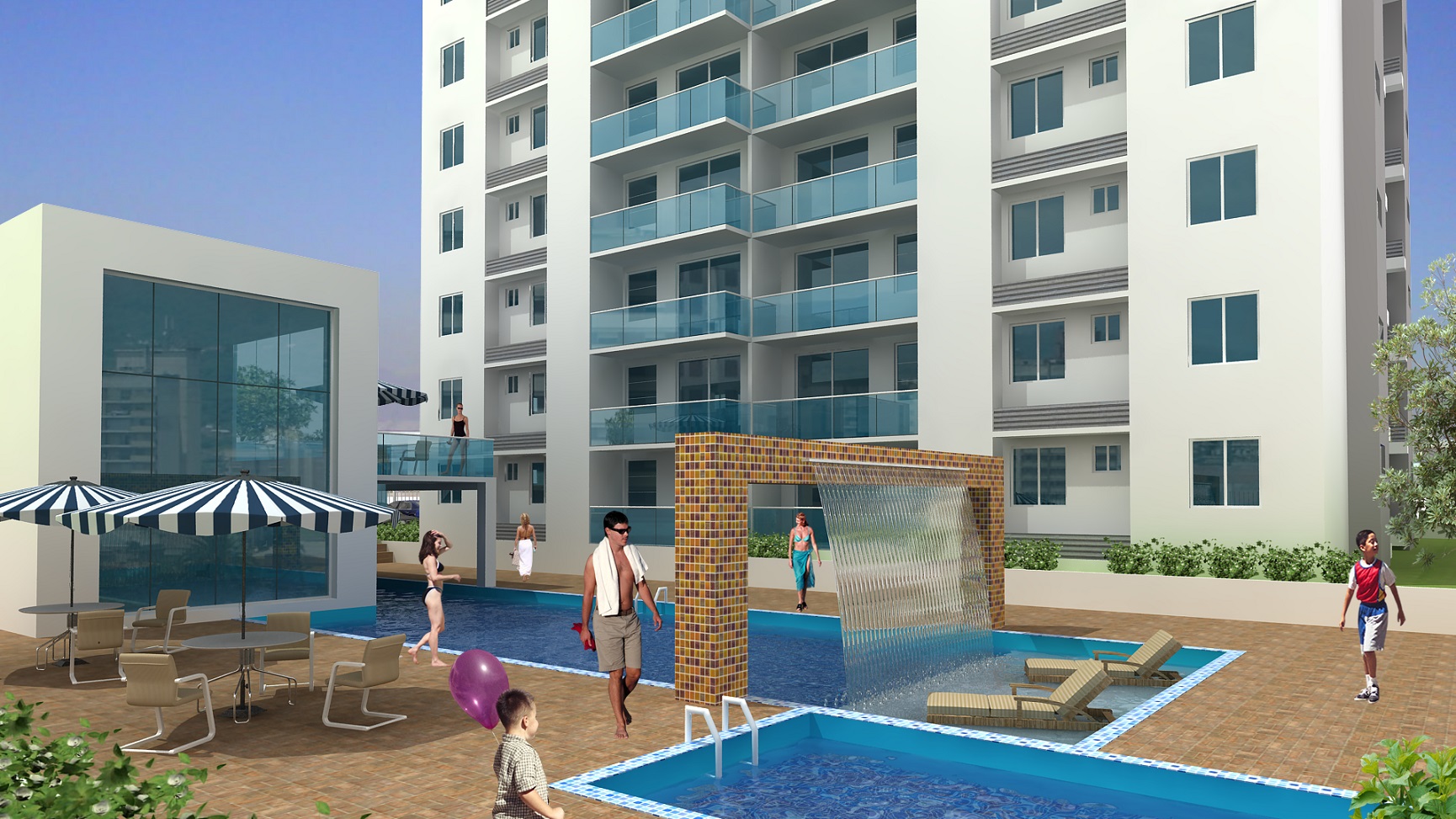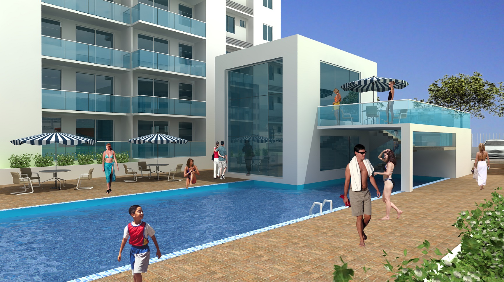 Está conformado por una torre de 8 pisos, parqueaderos, red contraincendios, un salón social, piscina para adultos y niños, juegos infantiles y planta eléctrica en zonas comunes.